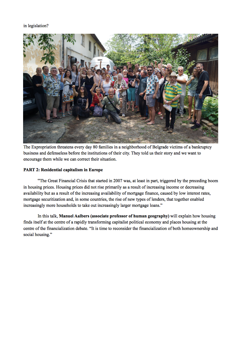 With the topic “Capital and the City” this years’ meeting of European Action Coalition for the Right to Housing and to the City delves into the connection between the city and the economic powers that increasingly seek to plunder it. In particular, we look at the position of housing and large urban development agendas in this, having become among the main processes driving contemporary global capitalism.