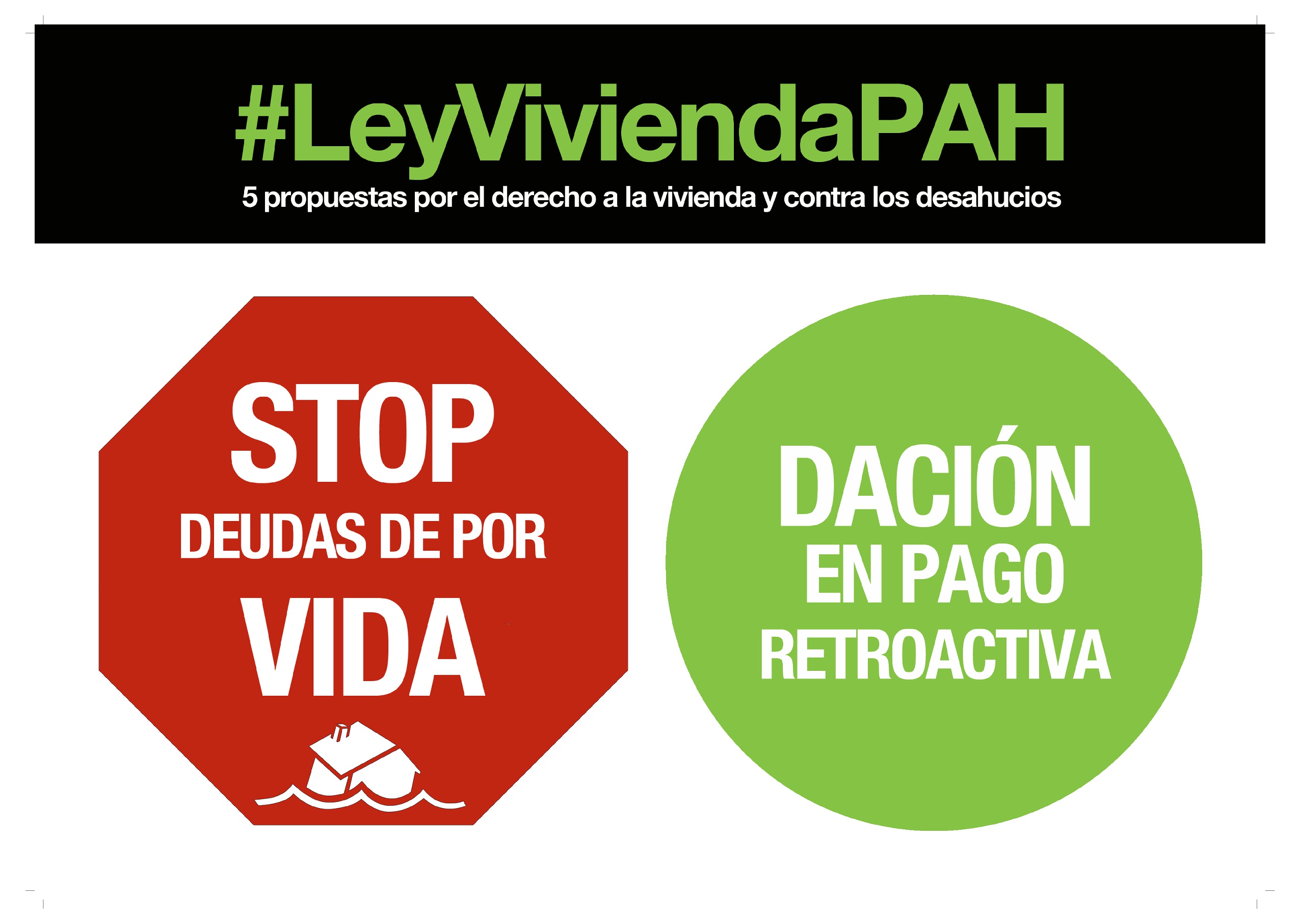 Nosotras tenemos claras cuales deberían ser estas medidas, recogidas en el texto de la Ley de Vivienda de la PAH. Un texto de ley que presentamos a todos los grupos parlamentarios del Congreso y que detalla la necesidad de legislar la dación en pago, que se limite la responsabilidad del deudor hipotecario a la vivienda, la inembargabilidad a los avalistas y el análisis de oficio de las cláusulas abusivas. De hecho, estamos muy impacientes de escuchar por fin que el PSOE apoya la dación en pago retroactiva, ya que es el único grupo parlamentario del Congreso que todavía no se ha posicionado sobre la Ley Vivienda PAH.
