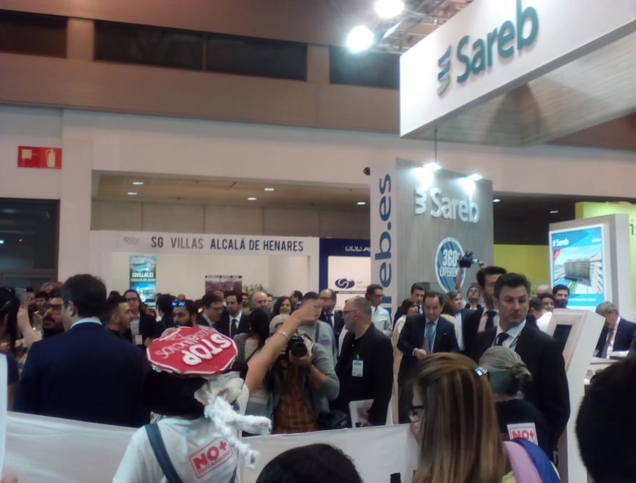 Así que, dadas estas circunstancias, ante un programa tan repugnante, vamos a ocupar este espacio para explicar que la compraventa o el alquiler de una vivienda es un derecho fundamental, y no el ámbito de especulación protegida por el poder político que es esta feria. Muchos de los que participan en el SIMA, lo que ofrecen a niñas y niños es la calle, la pobreza, la exclusión. Y no lo vamos a permitir.