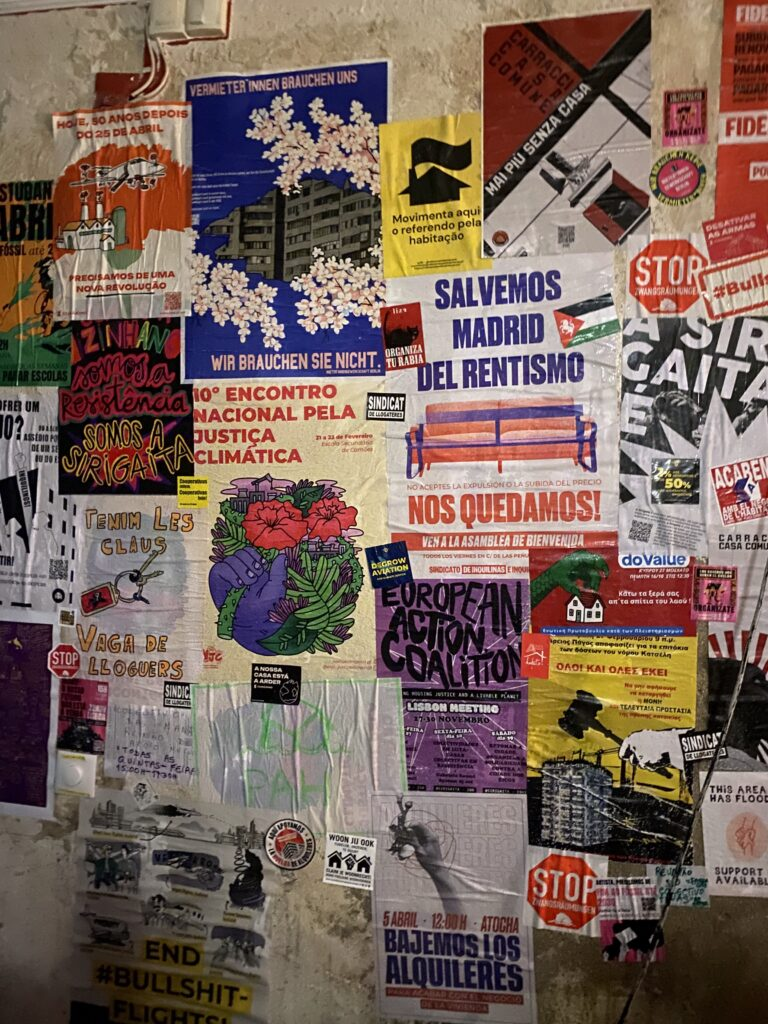 Comenzamos este encuentro comprendiendo las diferentes teorías del cambio presentes en la sala y las diferentes estrategias existentes. La gran diversidad que nos diferencia es tanto una fortaleza como una debilidad. Existen disparidades que dependen de los contextos locales individuales y también de las subjetividades que se organizan. Ser una persona sin hogar en Lisboa o un inquilino en Berlín significa formar parte de la misma lucha, pero las dos vidas cotidianas son muy diferentes. Por eso necesitamos crear mecanismos más eficaces para compartir conocimientos, tácticas y estrategias, pero también herramientas para compartir recursos que puedan ayudar a las regiones y grupos más o menos desfavorecidos.
